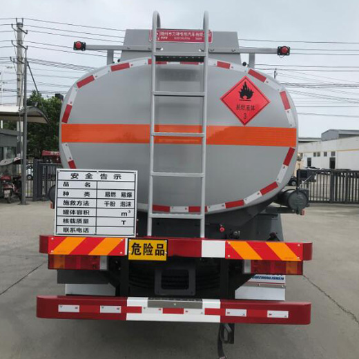 罐體有效容積:9.77立方米,危險貨物運輸車輛的類型為FL型,介質zui大密度700(kg/ m3);罐體尺寸(長×長軸×短軸)(mm)為:4790×1950×1350;僅采用3800mm軸距;選裝出口箱樣式;側、后防護裝置材料材質:Q235B,側、后防護均采用螺栓連接,后防護裝置斷面尺寸為(mm):80×150,后部防護離地高度:430mm;安裝具有衛星定位功能的行駛記錄儀,安裝前輪pan式制動器及限速裝置,限速80km/h,僅采用底盤子午線輪胎; ABS型號及生產廠家為:3631010-C2000/東科克諾爾商用車制動系統(十堰)有限公司,J ABS/焦作博瑞克控制技術有限公司;發動機型號及油耗值(L/100km)為:YCY30165-60(19.7), D30TCIF1(19.8)轉向輪安裝bao胎應急防護裝置;該車型可選裝ETC車載裝置