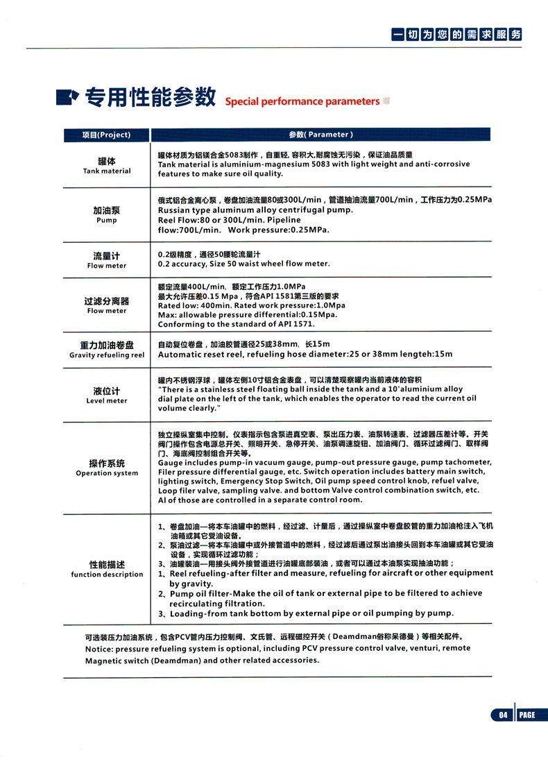 ★罐體材質是不銹鋼304(鋁合金)制作,加油車罐體安裝液位表,便于觀察油罐中的油料貯油量,配置油氣回收裝置和目視取樣器,罐體具有高液位控制裝置;