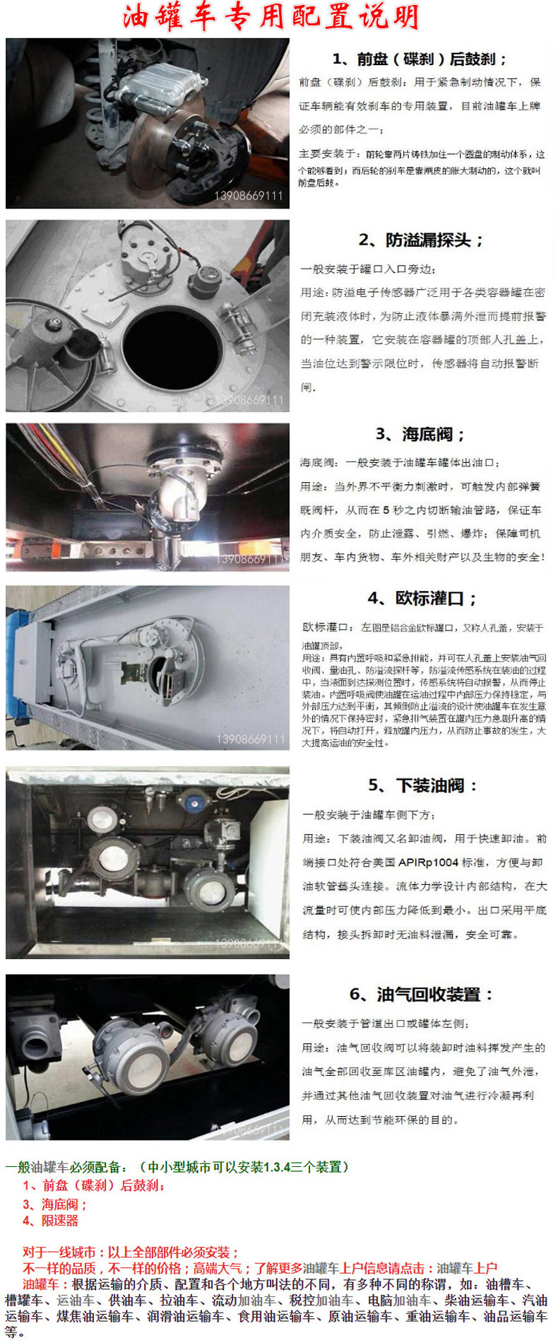油罐車/加油車/運油車主要用于石油化工部門各種輕質(zhì)燃油、重油、食用油等的運輸,具有吸油,泵油,多種油分裝,分放等功能.可獨立分倉,可分裝不同的油品、化工品、食品.設(shè)計上可實現(xiàn)泵進(jìn)、泵出過表,泵進(jìn)、泵出不過表,自流過表、不過表等功能. ★ 本公司改裝生產(chǎn)的油罐車均采用國內(nèi)成熟的原裝底盤進(jìn)行改裝,用戶也可自帶底盤,我廠提供上裝部件的生產(chǎn)改裝. ★ 罐體材質(zhì):碳鋼、不銹鋼、鋼襯塑、玻璃鋼、全塑罐(聚乙烯) ★ 罐型:方圓形、橢圓形、圓形 ★ 油泵:自吸泵、齒輪泵、化工泵、不銹鋼泵 ★ 油表:單計數(shù)、雙計數(shù)、稅控加油機(jī) ★ 功能:可獨立分倉,可分裝不同的油品、化工品、食品.設(shè)計上可實現(xiàn)泵進(jìn)、泵出過表,泵進(jìn)、泵出不過 表,自流過表、不過表等功能. ★ 油罐車均可設(shè)計成化工車. ★ 油罐車均可配備電腦加油機(jī). ★ 油罐車寬范圍的上戶噸位選擇,以滿足用戶需求. ★ 油罐車罐體內(nèi)設(shè)多道防波隔板.采用高壓氣體試漏檢測,使罐體具有強度高,車輛運載安全平穩(wěn)等特點. 楚勝汽車集團(tuán)有限公司生產(chǎn)的油罐車|加油車|運油車符合汽車公告,有燃油達(dá)標(biāo)公告,可上牌和辦理營運證.需要更多油罐車資料/圖片/價格/配件,請登陸公司網(wǎng)站:http://www.naoqd.com/查看!24小時購車咨詢熱線:13908669111 |