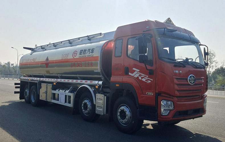 > 產品中心 > 解放油罐車系列 解放油罐車_液罐車_解放前四后六20噸鋁合金運油車★13908669111★楚勝牌CSC5311GYYLCA6A型鋁合金運油車,采用解放CA1320P28K2L6T9BE6A81底盤改裝而成,該車適用于危險品運輸,運送危險貨物車輛類型為:FL型.準運介質zui大密度:830千克/立方米,罐體總容量24.5立方米,罐體有效容積24.1立方米,更多油罐車盡在:www.naoqd.com
