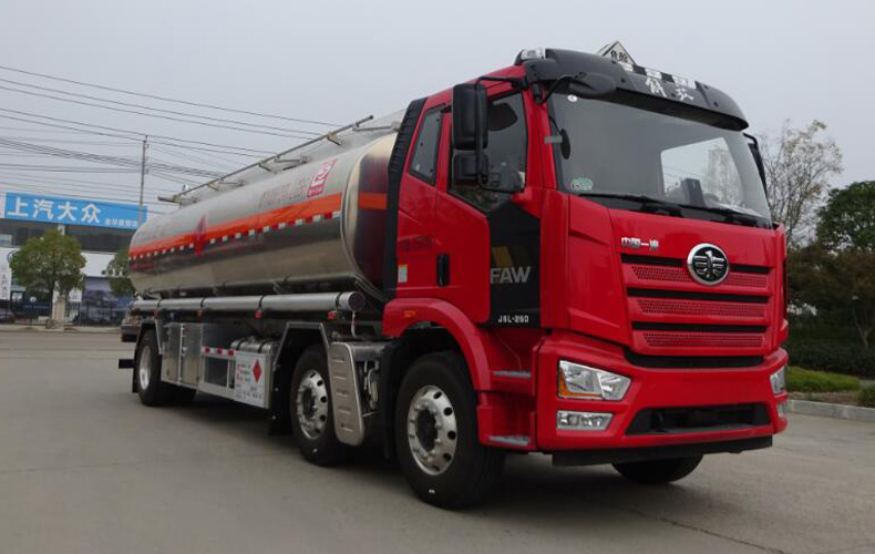 罐體總容量:22.05立方米,罐體有效容積:21立方米,危險貨物運輸車輛的類型為FL型,介質zui大密度800千克/立方米;罐體尺寸(長×長軸×短軸)(mm)為:7350×2350×1650;僅采用1900+5100mm軸距;選裝左右兩側管廂樣式及出口箱樣式,選裝滅火器筒樣式及尾側左右出口箱樣式;側、后防護裝置材料材質:Q235B,側、后防護均采用螺栓連接,后防護裝置斷面尺寸為(mm):80×150,后部防護離地高度:450mm;僅采用底盤子午線輪胎;安裝具有衛星定位功能的行駛記錄儀;排氣管前置,安裝前輪pan式制動器和限速裝置,限速79km/h,安裝EBS,EBS控制系統生產廠家/型號:威伯科汽車控制系統(中國)有限公司/EBS3;發動機型號及油耗值(L/100km)為:CA6DH1-26E61(26.04),CA6DH1-24E61(26.04),CA6DH1-22E61(26.04);該車后軸采用空氣懸架;轉向輪安裝bao胎應急防護裝置;該車型可選裝ETC車載裝置.
