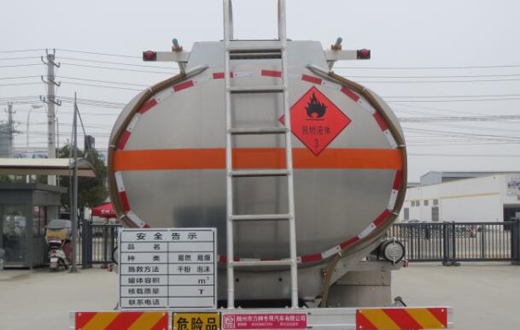罐體有效容積:20.2立方米,危險貨物運輸車輛的類型為FL型,類項號:3;罐體尺寸(長×長軸×短軸)(mm)為:7350×2200×1600;僅采用4975+1400mm軸距;側(cè)、后防護裝置材料材質(zhì):Q235B,側(cè)、后防護均采用螺栓連接,后防護裝置斷面尺寸為(mm):80×150,后部防護離地高度:470mm;隨底盤選裝駕駛室;選裝炮筒樣式及工具箱樣式,選裝尾部帶出口箱.安裝具有衛(wèi)星定位功能的行駛記錄儀,排氣管前置,安裝前輪盤式制動器和限速裝置,限速80km/h,僅采用底盤子午線輪胎;EBS系統(tǒng)控制器生產(chǎn)企業(yè)/型號為威伯科(上海)管理有限公司/EBS3;發(fā)動機型號及油耗值(L/100km)為:MC07.27-60(34.98),MC07.31-60(34.98),MC07.33-60(34.98),MC07.34-60(34.98),WP8.350E61(33.02),WP6H270E61(32.97),MC09.35-60(33.83),MC09.38-60(33.83),MC07H.29-60(33.79),MC07H.33-60(33.79),MC07H.35-60(33.79),WP7.270E61(33.03),WP7.300E61(33.03),MC11.40-60(33.1),該車后軸采用空氣懸架;轉(zhuǎn)向輪安裝爆胎應(yīng)急防護裝置;該車型可選裝ETC車載裝置;